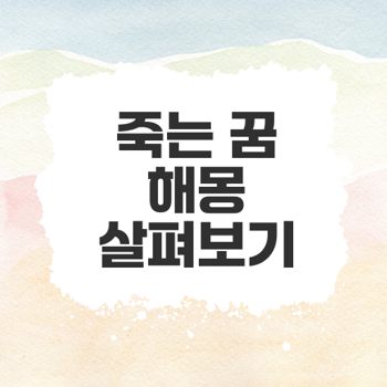 삶은 끊임없는 경쟁과 갈등 속에서 흘러갑니다. 죽음의 꿈은 그 갈등을 극복하고 긍정적인 변화를 유도하는 메시지로 읽힐 수 있습니다. 이를 통해 신뢰를 회복하고 안정한 인간관계를 구축할 수 있는 길을 찾는데 도움이 되길 바랍니다.