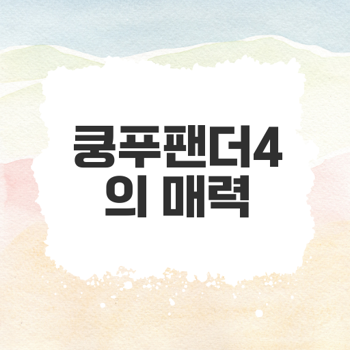 영화 <쿵푸팬더4>는 감동적인 이야기와 더불어 다채로운 액션이 어우러져 모든 관객에게 즐거움을 선사할 것입니다. 새로운 여정을 통해 다시금 당신을 사로잡을 포의 성장 이야기를 놓치지 마세요!